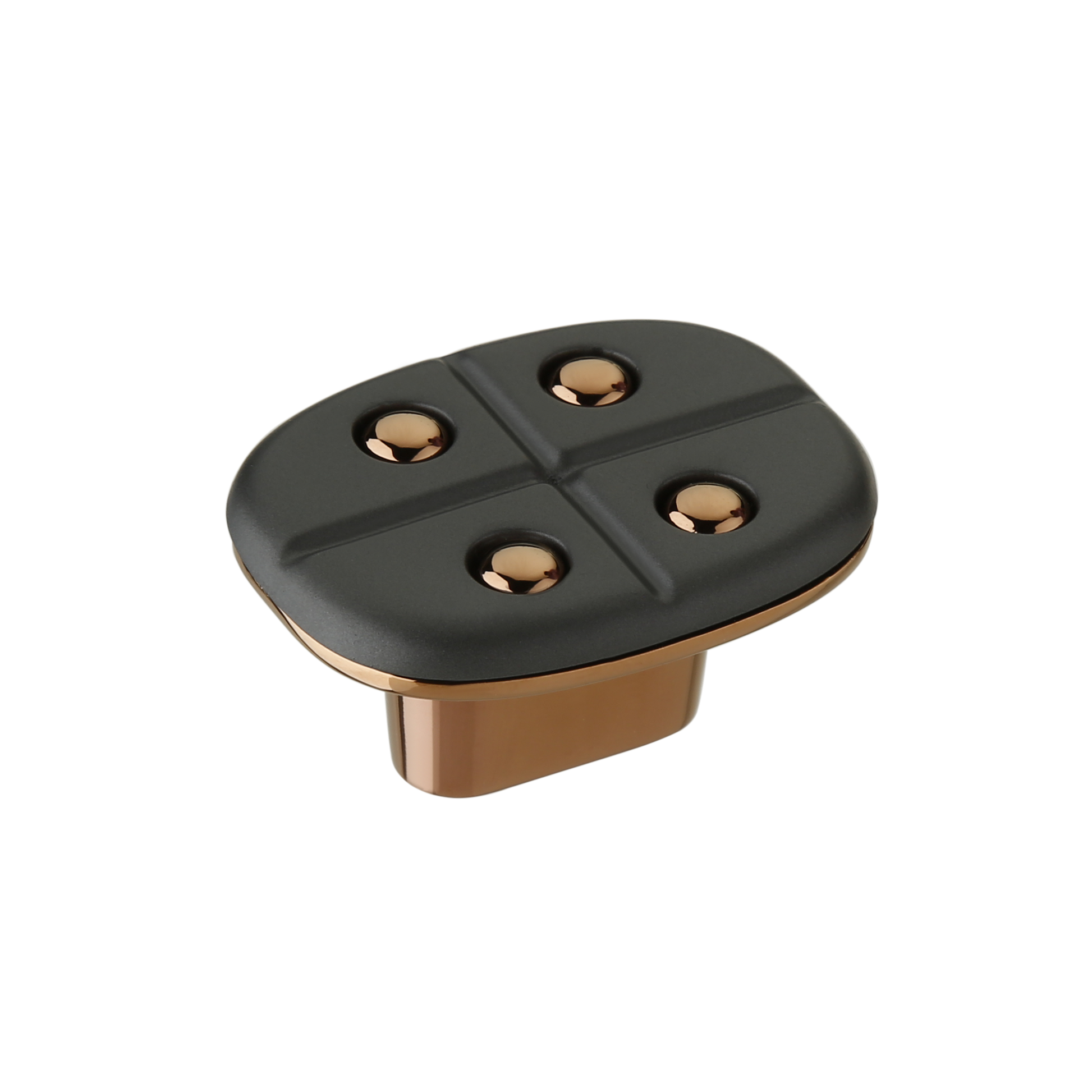 The Atria knob combines modern design with sleek sophistication, featuring a rectangular shape softened by rounded edges. Its smooth texture and dual-tone finish create a bold yet refined statement, perfect for contemporary interiors.